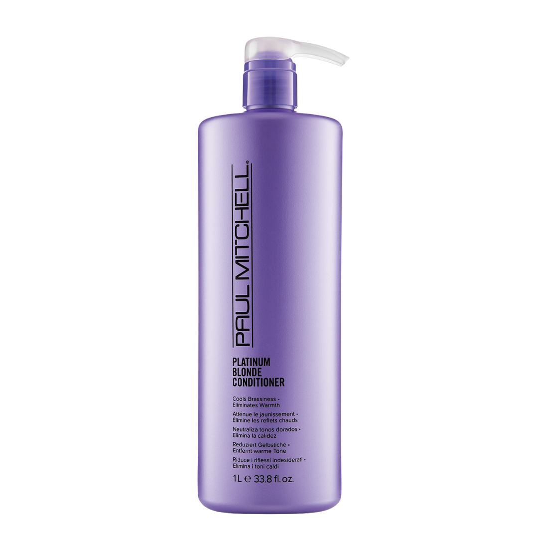 Keep blonde, highlighted, gray or white hair light, bright and conditioned with Platinum Blonde Conditioner from Paul Mitchell. This purple conditioner features a violet-tinted, color-enhancing formula to help cool brassy tones in natural blonde and color-treated hair while conditioning ingredients and extracts hydrate hair and intensify shine.