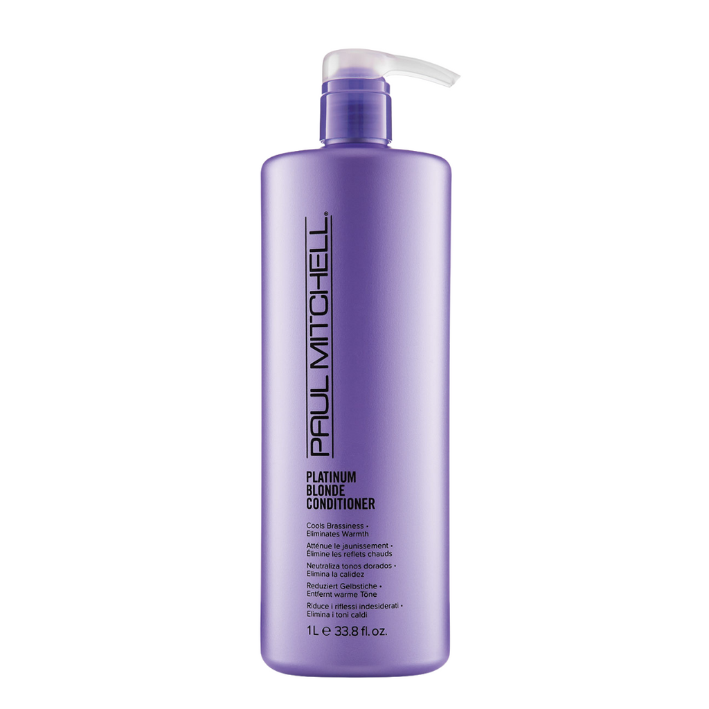 Maintain bright, luminous hair with Paul Mitchell Platinum Blonde Violet Conditioner®, the professional purple conditioner that neutralises unwanted brassy tones in all shades of blonde, highlighted, grey, silver, or white hair. Infused with violet pigments, this conditioner cools brassiness while hydrating and softening strands, leaving hair smooth, shiny, and healthy-looking.