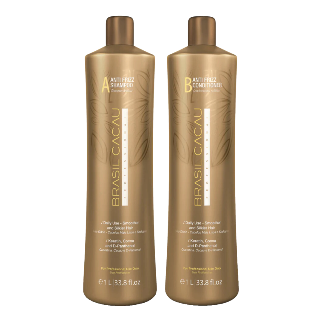 Incorporating Brazilian Keratin technology, Brasil Cacau Anti-Frizz Shampoo and Conditioner will reinforce your hair's internal structure, smoothing the cuticle and eliminating frizz.
