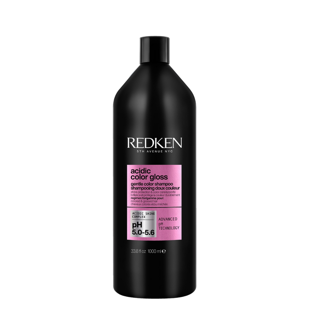 The latest innovation in color care, Redken's Acidic Color Gloss Shampoo is a revolutionary shampoo that extends color and provides salon-like shine. This sulfate-free shampoo provides long-lasting color vibrancy for up to 32 washes* and locks in intense molecular-level shine for up to 76% shinier hair**. Use as a complete routine with Acidic Color Gloss Activated Glass Gloss Treatment, Conditioner and Heat Protection Leave-In Treatment.