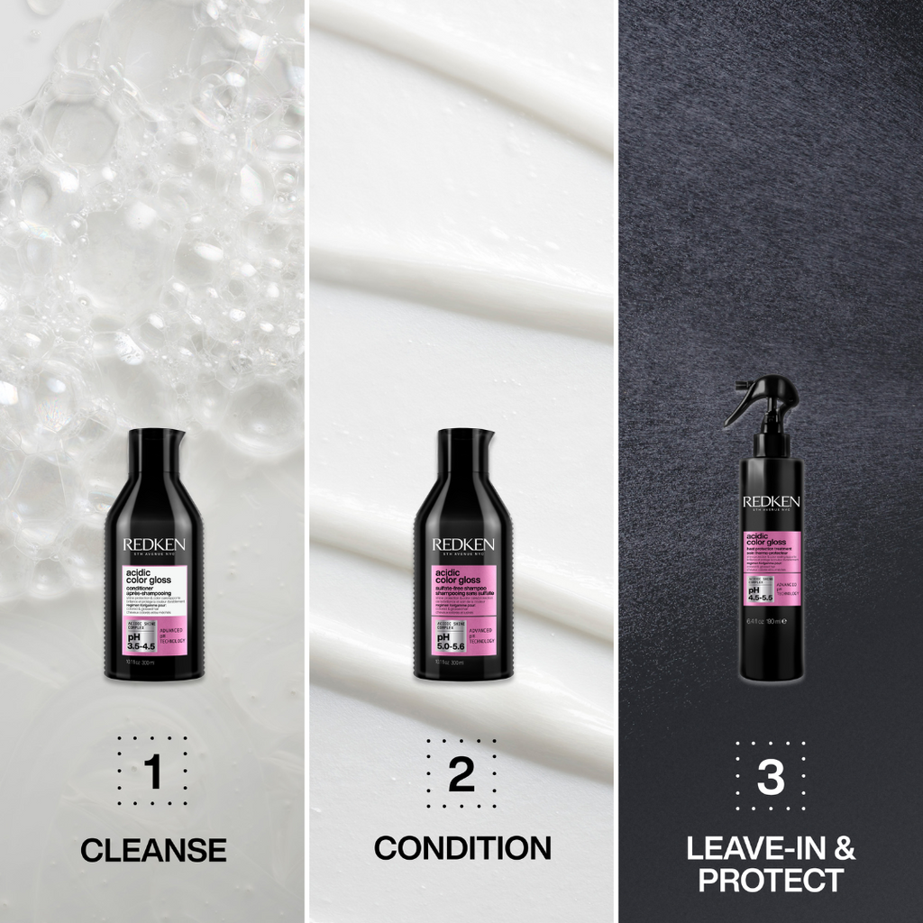 The latest innovation in color care, Redken Acidic Color Gloss Conditioner is a revolutionary glossing conditioner that extends salon-grade color, conditions and provides salon-like shine. This acidic formula is ph-balanced for long-lasting color vibrancy for up to 32 washes* and 76% shinier hair**. It intensely conditions hair and seals the cuticle to lock in molecular-level shine. Use as a complete routine with Acidic Color Gloss Shampoo, Activated Glass Gloss Treatment and Heat Protection Leave-In Treatment.