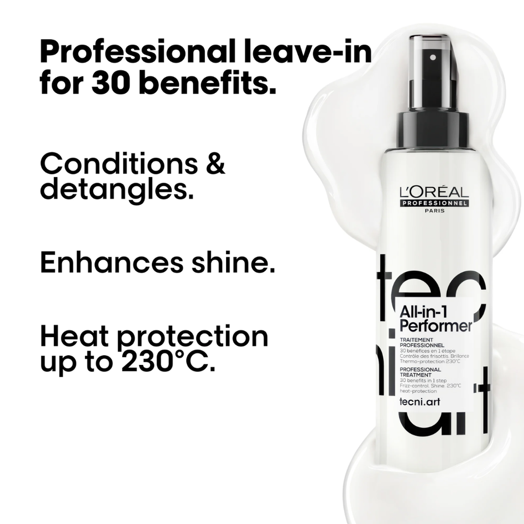 Tecni.art All-in-1 Performer Styling Treatment by L'Oréal Professionnel is a professional leave-in treatment spray for 30 benefits in 1 step: