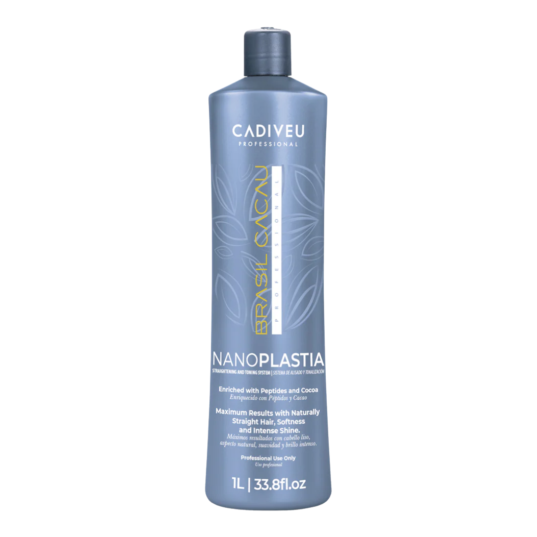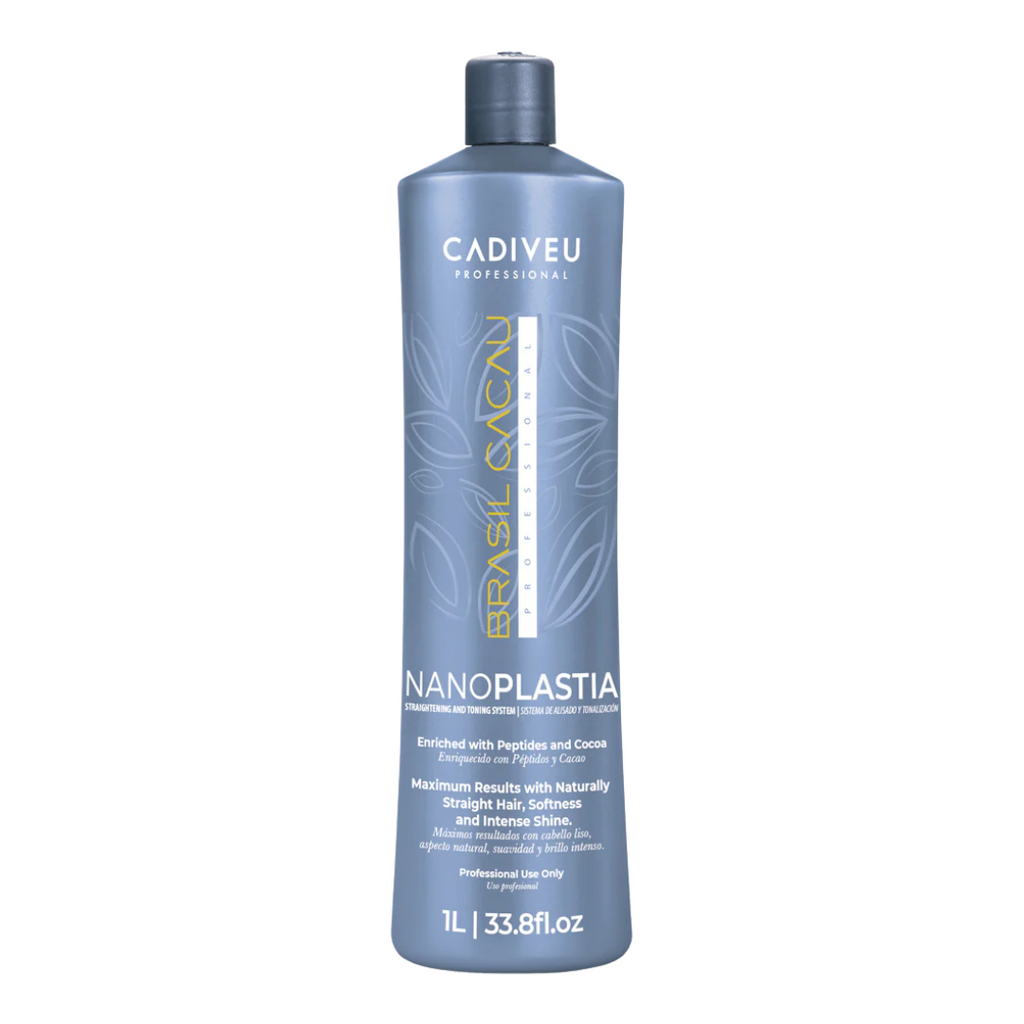 Brasil Cacau Nanoplastia Technology and nutrition for flawless straightening! A powerful fusion of intelligent peptides and cocoa. Straightening treatment with nanoparticles that deliver long-lasting and absolute smoothness. Enriched with peptides and cocoa, it ensures a healthy result with intense shine and a silky touch.