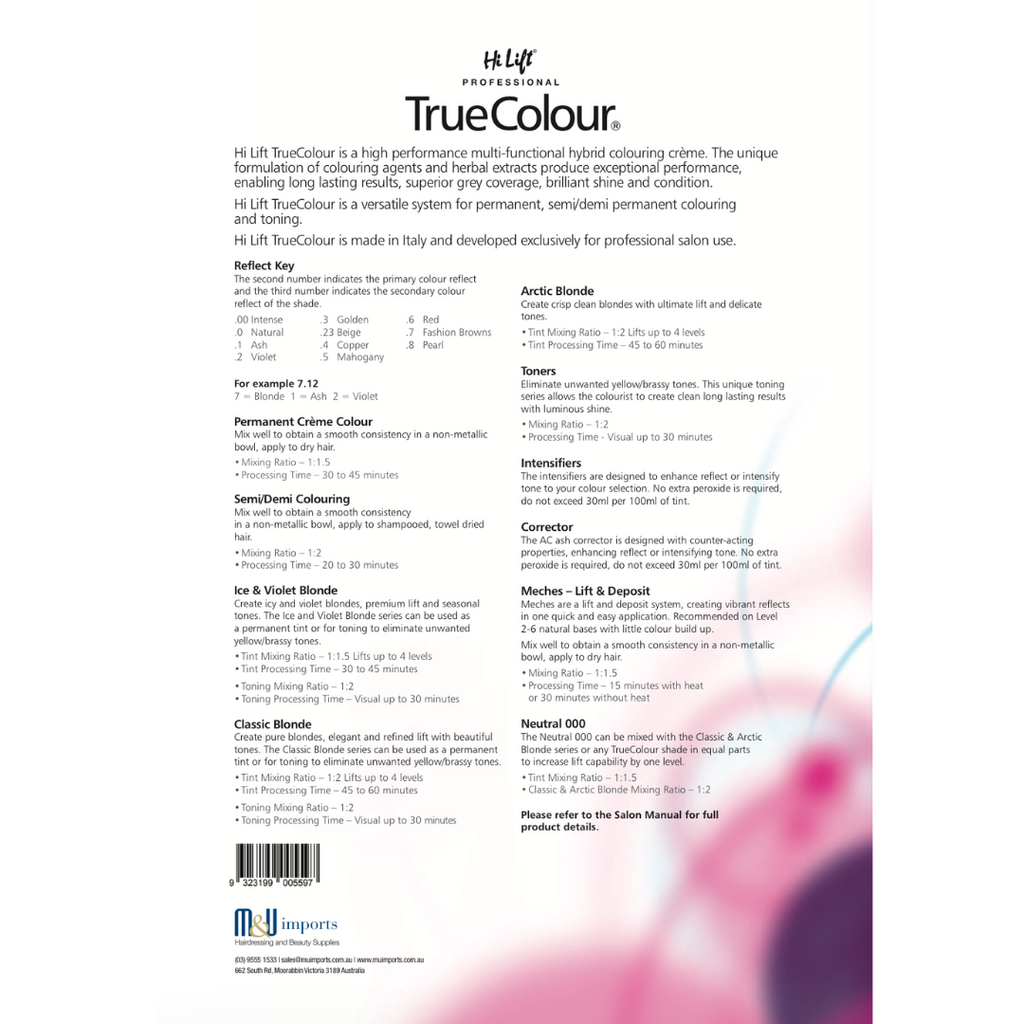 Hi Lift True Colour is a versatile system for permanent, semi/demi permanent colouring and toning.
