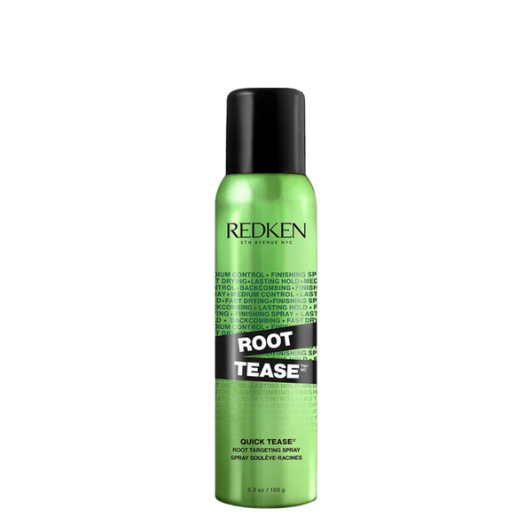 Root Tease Backcombing Spray is a medium control hairspray that provides long-lasting root lift a for a teased, texturizing, matte finish. Formerly Quick Tease 15, this professional finishing hairspray has a horizontal mist designed to create lift at the roots, add texture, and control unwanted frizz. Add instant body to any style for an easy backcombed, voluminous, teased effect.