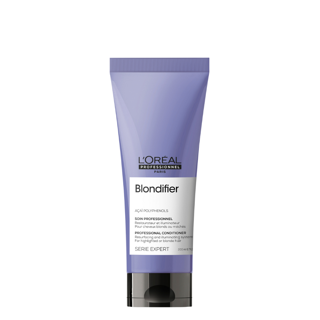 Treat your blonde hair with the L'Oréal Professionnel Blondifier resurfacing and illuminating conditioner. With a professional enriched with Açai berry extract containing polyphenols, this lightweight conditioner helps enhance the multidimensional radiance of blonde hair. Hair is instantly shiny, soft and easy to detangle from lengths to ends.