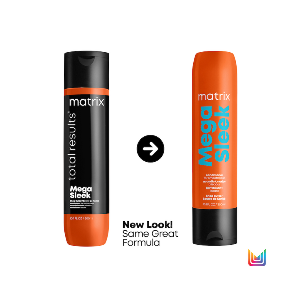 Mega Sleek Conditioner with smoothing shea butter helps control rebellious, unruly hair and manages frizz against humidity for smoothness.